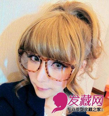 斑纹眼镜加上厚厚刘海,看起来野性十足,金黄头发扎起小马尾,活泼动感,灵气可爱的非主流