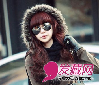 散肩长卷,整齐的刘海,适度的蓬松,气场强劲很有韩国街拍的味道,在挑染上大气的红色以后,绝对惊艳街头,回头率百分百。