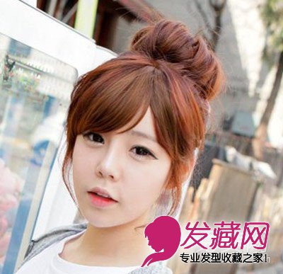 清爽高扎丸子头,将所有的头发全部集中到头发顶部,绑一个丸子头。搭配红褐色