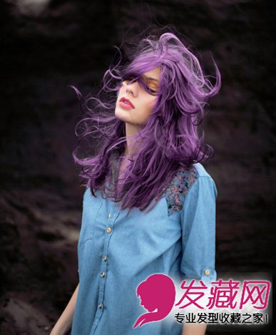 这一款凌乱的卷发,搭配上梦幻般紫色的染发颜色,即使是搭配最简单的牛仔衬衣美得让人忘记了呼吸。