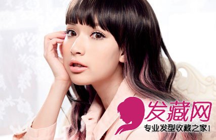 很个性的一款发色,深咖啡色长发从头发的中间开始做荧光粉色挑染,看起来就像个芭比娃娃般梦幻。