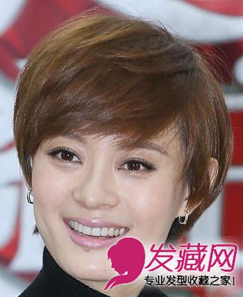 肤色白皙的黄圣依很适合红色系的发色,能将她的肤色衬托得白里透红。再搭配碎刘海短发,俏皮又时髦。