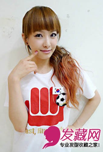 长发,Victoria这一次在浅棕色的染发底色上增添了深棕色挑染,渐染的浅红色同样十分热情,侧扎发更是甜美可爱。