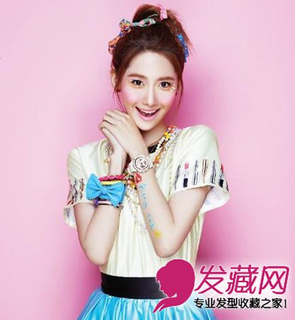 允儿棕色长发盘在耳后,用各式甜美鲜亮的发带装点,萌态十足,加上金色眼妆更添美感,清新脱俗的姿态,让人望尘莫及哦。