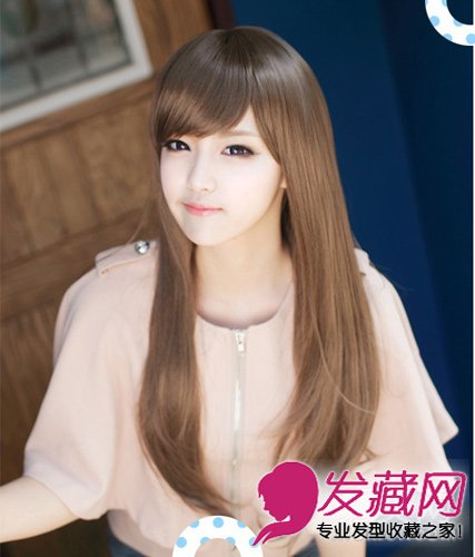 发型,此款发型的瘦脸重点一是在于直发的长度,可以拉上脸型。二就是斜刘海可以修饰额头和脸型,很适合圆脸的女生哦。