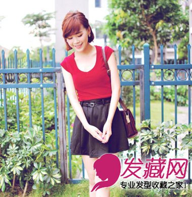 干练的波波头扎发,甜美的栗红色发丝,露出耳朵,干净清爽