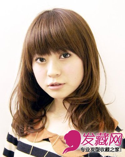 碎发刘海加上小人形的刘海,两侧的头发则向内弯曲,既修饰了脸型,又凸显了女性的婉约。