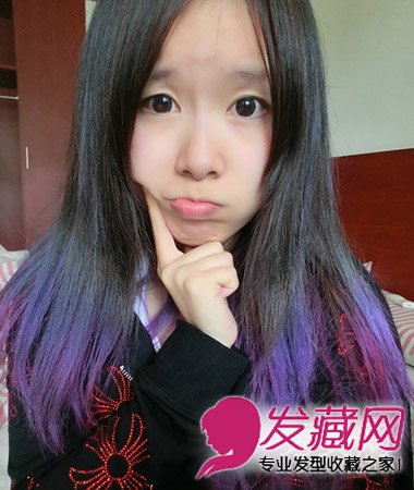 ,修颜瘦脸,搭配紫色系挑染发更加有可爱气质,呆萌度破表。