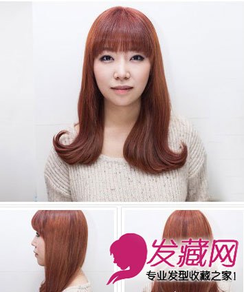 发型点评:棕红色长发活力十足,如美人鱼尾般摆动的发尾时尚惹眼,更能修饰姣出好脸型。