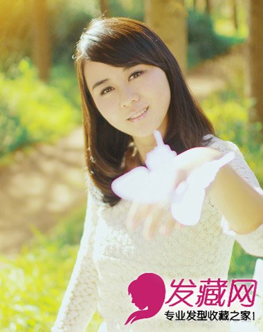 发型很好的修饰圆脸型,自然柔顺的秀发披散在肩头,穿上白色的裙装,时尚优雅。