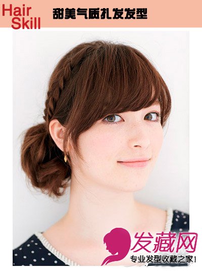 推荐理由:想简单扎个低位花苞?那就再试试编发的点缀吧,在右侧编出一条紧致的辫子效果,甜美气质立即提升。