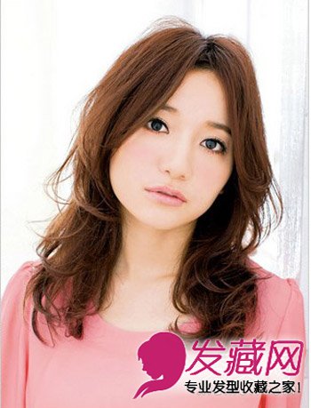 发型点评:棕色卷发轻柔自然,中长微卷发打造出慵懒柔美气质,中分长刘海微微卷翘,甜美不失俏皮感。