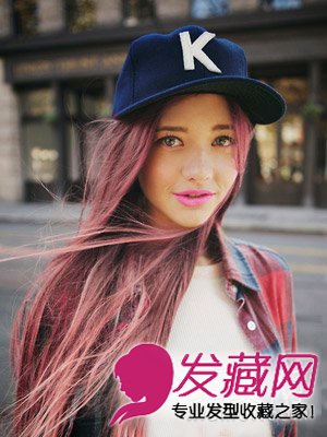 发型,一款偏灰色的红色发色,个性却不夸张。很适合戴上棒球帽。彩色的染发十分好看。