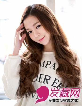 搭配好看流行的巧克力色染发,很好的衬托美眉健康的肌肤,再加上水波纹烫发效果营造出柔顺蓬蓬感,非常修颜减龄