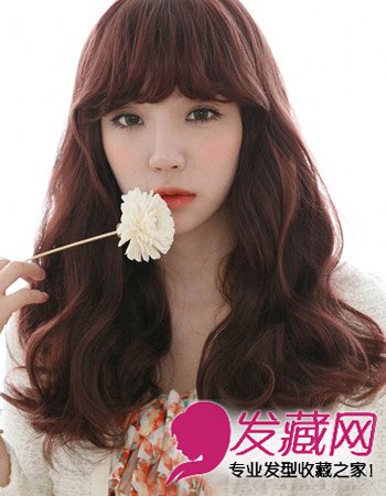 设计搭配酒红色的染发颜色,很好的展现美眉健康白皙的肌肤,再加上蓬松质感的长卷发造型,很有空气感烫发效果,很时尚流行的一款长卷发。