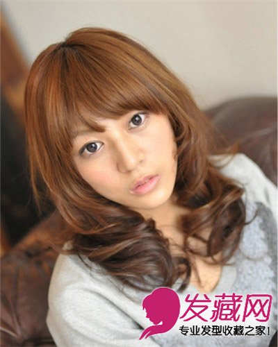 发尾螺旋内卷,以及两边的发丝有效的包裹着脸型,突出菱形脸细长的下巴,刘海的弧度处理,让发型具有活力,浅咖啡色