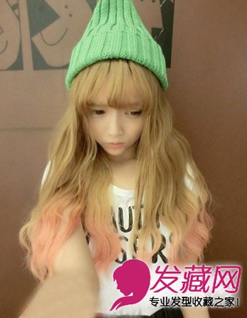 金色的发色与粉红色的搭配更显气质与个性的一面,空气刘海将女生甜美的一面展现出来,而时尚的长
