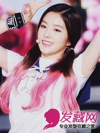 烫卷发的萌妹纸必学一款韩式挑染发型,微烫卷的蓬松长发搭配渐变的糖果色染发颜色,双马尾的扎发更加显嫩。