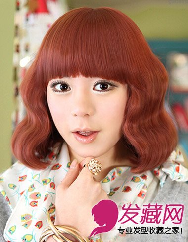 个性的染发颜色,搭配时尚潮流的韩式蛋卷头发型,显得气质十足,再加上厚重的齐刘海发型,起到了十足的修建了减龄功效呢!