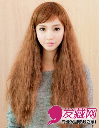 唯美的麦穗烫造型,加上减龄的斜刘海发型,显得十分唯美有气质,再加上个性的棕色染发,很衬美眉的洁白肌肤,很潮哦!