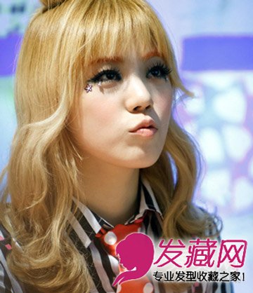 金黄色的染发色是妹纸们必不可少的一款染发颜色,齐刘海卷发最显脸小,搭配染发色显嫩,甜美可爱的萌妹纸发型。
