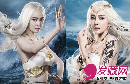 一头富有光泽感的飘逸白发搭配金色发饰,打造出动漫人物的超时空感,白亮的肌肤加淡淡的裸色唇妆,清秀淡雅,半烟熏眼妆提亮增添妩媚,飘逸的长白发造型似乎也挺适合杨幂的,贴合肌肤肤色。但是杨幂的这一造型如果被“小糯米”看到了估计会吓哭吧。