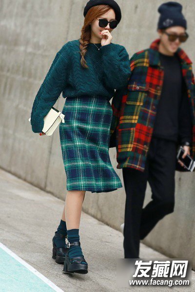 要时尚,怎能少的了可爱的编发呢!街头潮人最爱的侧边麻花辫发型,搭配贝雷帽甜美淑女,毛衣和半身裙更展现一种个性文艺范。