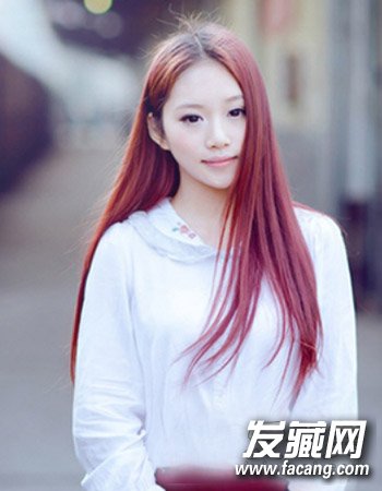 一款魅力十足的女生暖色系染发发型,利用的是简单时尚的酒红色染发。而配合这种中分式的长