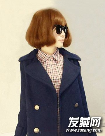一款很显女生的时尚气质风的暖色系染发发型,利用的是简单的波波头造型活泼可爱,而配合这种温暖明亮的棕黄色染发与厚重的齐刘海还有内扣式的发梢造型更显修颜减龄。