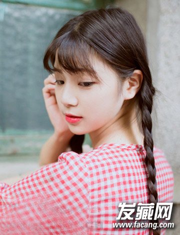 更加洋气,复古范的双扎麻花辫,温柔的空气刘海做衬托,小清新学妹时尚感立显。
