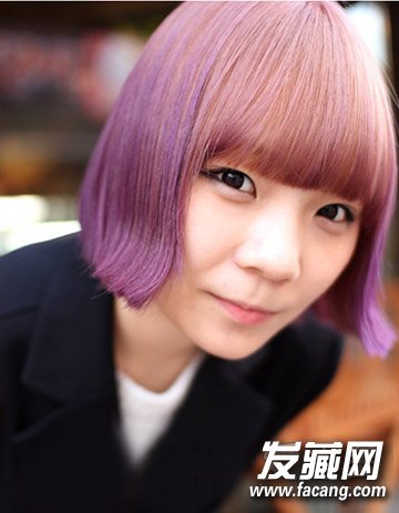 染发发型,紫色的染发颜色充满了神秘感,搭配齐脖短发,很个性的一款