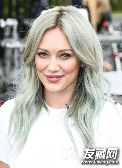 Hilary Erhard Duff这款“奶奶灰”掺进了绿色,很清爽的感觉。她的肤色很红润,与淡淡的绿色形成补色,很耐看。