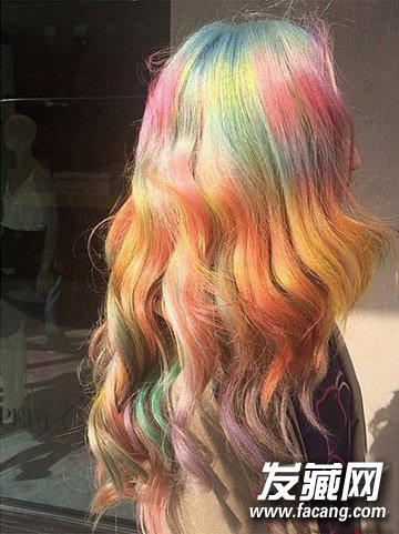 彩虹颜色的头发+大波浪发型 彩虹色染发好惊艳(2)