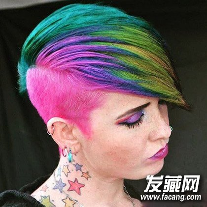 彩虹颜色的头发+大波浪发型 彩虹色染发好惊艳(4)