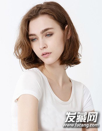 一款很适合轻熟女的魅力女生卡其色染发设计,简单自然的无刘海偏分造型设计再本体琮 种类似于蛋卷头形式的中短发