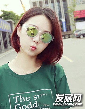 清爽的偏分露额造型设计可是最能将女生饱满的额头完美的呈现出来的了,再配合这种深色系的酒红色染发设计与简单的中短发波波头同样优雅吸睛。