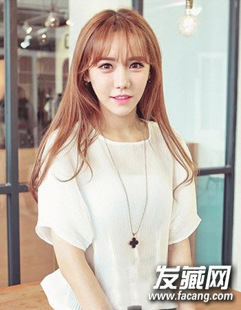 清新灵动感的空气感刘海造型时尚吸睛,再配合 这种浅色系的橘黄染发设计与飘逸的长直发更添十足的甜美可爱田园风。