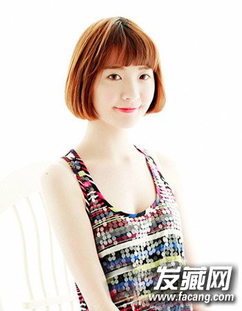 ,可爱甜美贩齐刘海波波头造型设计再配合明亮的橘黄色染发颜色相搭更十足青春活力风。