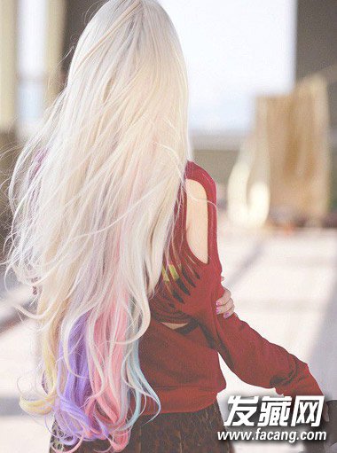 浅金色的染发今年也成为人们最爱,带着一点淡淡的黄色,在发尾再加上五彩的挑染,长发飘飘的背影是不是很吸睛?