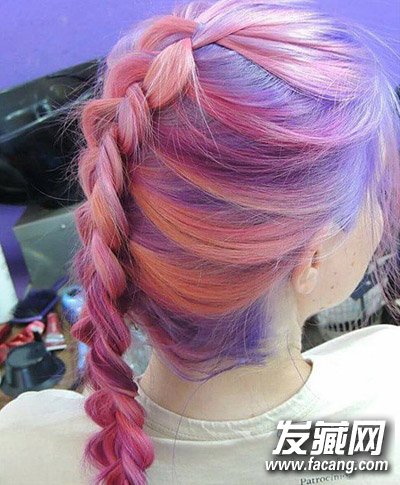挑染或者编发时,紫色是粉色的”好基友“,两个相近的颜色变成辫子时,时髦又好看,而且很衬白皙的肌肤。