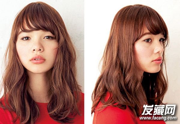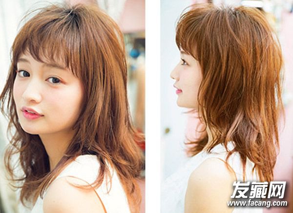这一款及肩长发比起上一款发型头发打得更薄一些,发丝更加服帖,搭配细碎不规则的眉上齐刘海更显俏皮甜美,比较适合十几岁的女生。