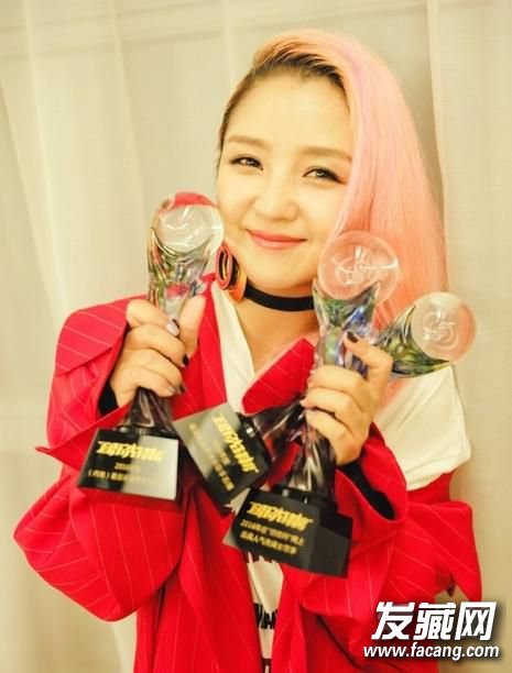 这个颜色让我想到上个月写何洁的发色时,里面有一款就是蜜桃粉。不过她这个颜色看起来要更偏橘一点,有荧光感。