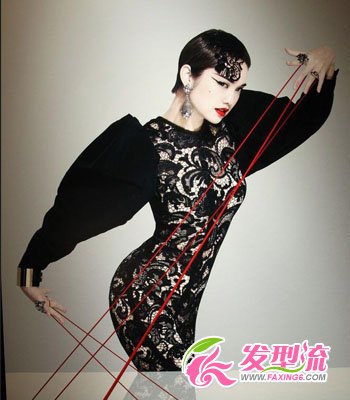 杨丞琳的这款沙宣彰显出独特的个性,利用发蜡打造出服帖的感觉,额前的复古额饰,夸张的眼妆和性感红唇,呈现另类美。