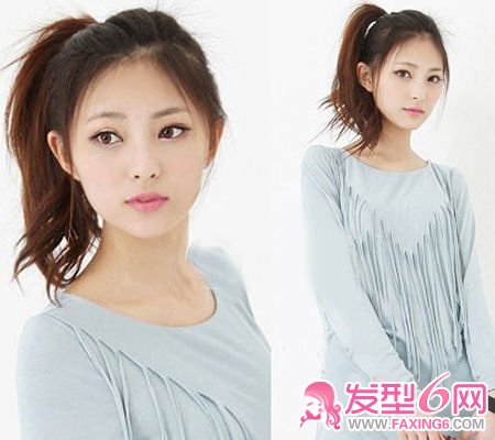 偷懒的学生MM最爱的就是马尾发型了,两分钟就能自己搞定!这款适合中长发的双马尾发型很有个性——顶发部分在较高的脑后位置扎成歪扎高马尾,剩下的头发沿着后颈扎成低马尾,然后利用发卡将马尾根部固定藏在高马尾之下。还可以利用卷发棒将低马尾做卷增添趣味感。