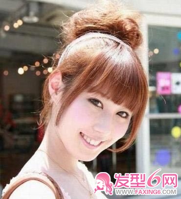长发打造出的“卷卷头”,重点在于把“丸子头”打乱,还要搭配上可爱的蕾丝发带。发带要绑的贴近梳起来的部位,而且尽量让发卷凌乱一些。还要注意留出两绺稍长的头帘。