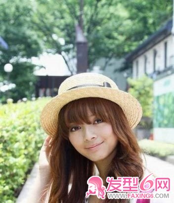 打造很有女人味的田园长发,重点在于自然的头帘与中卷度的长发,搭配上竹编的浅色圆边帽。帽子也要挑选稍硬的圆边帽,而且要注意卷发的蓬松感。