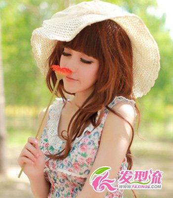 整齐的刘海修剪出略微的细碎感,更能突显一双美丽大眼。稍显轻薄的发量制造出空气感,让发丝随风飘扬显得飘逸十足。利用大边沿帽子点缀发型,从视觉上减小了脸部面积,还很有出游风哦,适合去海边度假的一款装扮。