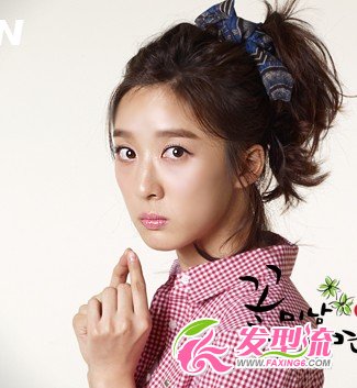 高扎马尾造型展现出女生的动感活力,利用韩式发带装点发型,更加提升气质,经典的格子衬衫散发出清新美。
