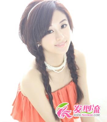 可爱如邻家女生的麻花辫扎发,斜刘海修饰了脸型,发辫随意拧绕,头顶发量较多,让头型更显饱满。
