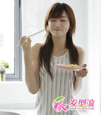 将柔顺的直发扎出半扎发造型,斜刘海和额际垂落的发丝营造出丝丝动人的风情,将长发放置在两侧更加柔美。